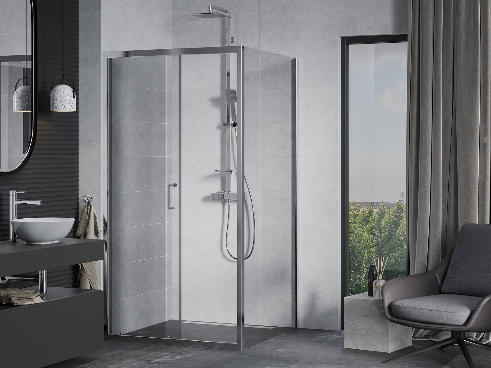 Bīdāmās durvis pārvietojas pa speciālām vadotnēm un neprasa papildus telpu, lai tās atvērtu, tāpēc tās būs piemērotas mazākām vannas istabām. Pateicoties dubultajiem ruļļiem no izturīgas plastmasas, to kustība ir vienmērīga.