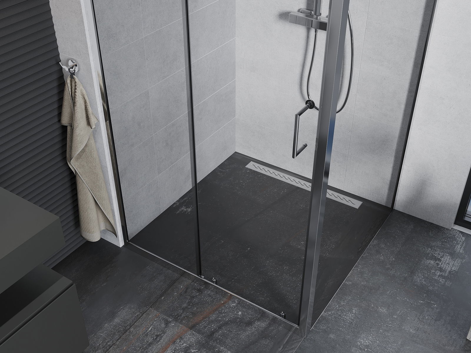 Produktu, atkarībā no vajadzībām, var uzstādīt gan uz dušas paliktņa, gan tieši uz grīdas. Universālā montāžas metode ļauj pielāgot produktu dažāda veida vannas istabām un telpas konfigurācijām.