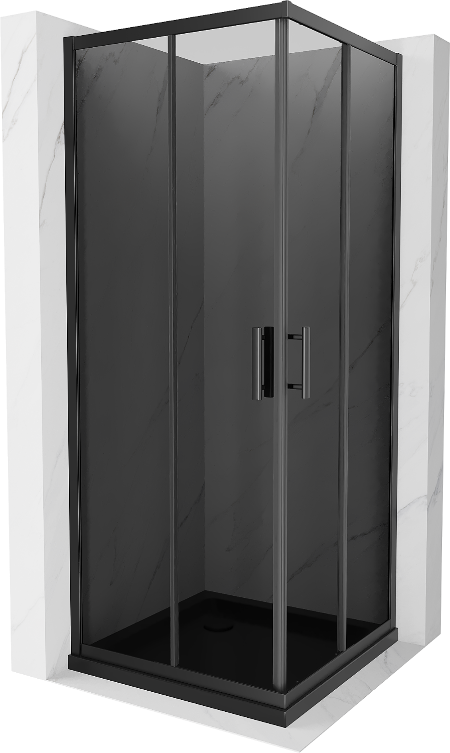 Mexen Rio kvadrāta dušas kabīne 90 x 90 cm, grafīts, melna + dušas paliktnis Flat, melns - 860-090-090-70-40-4070B