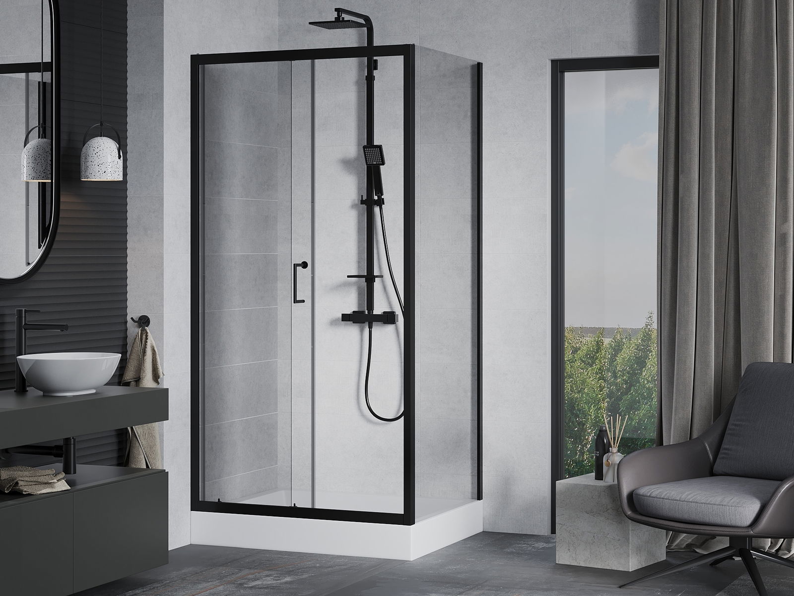 Mexen Rio dušas kabīne kvadrātveida 90 x 90 cm, caurspīdīga, melna - 860-090-090-70-00