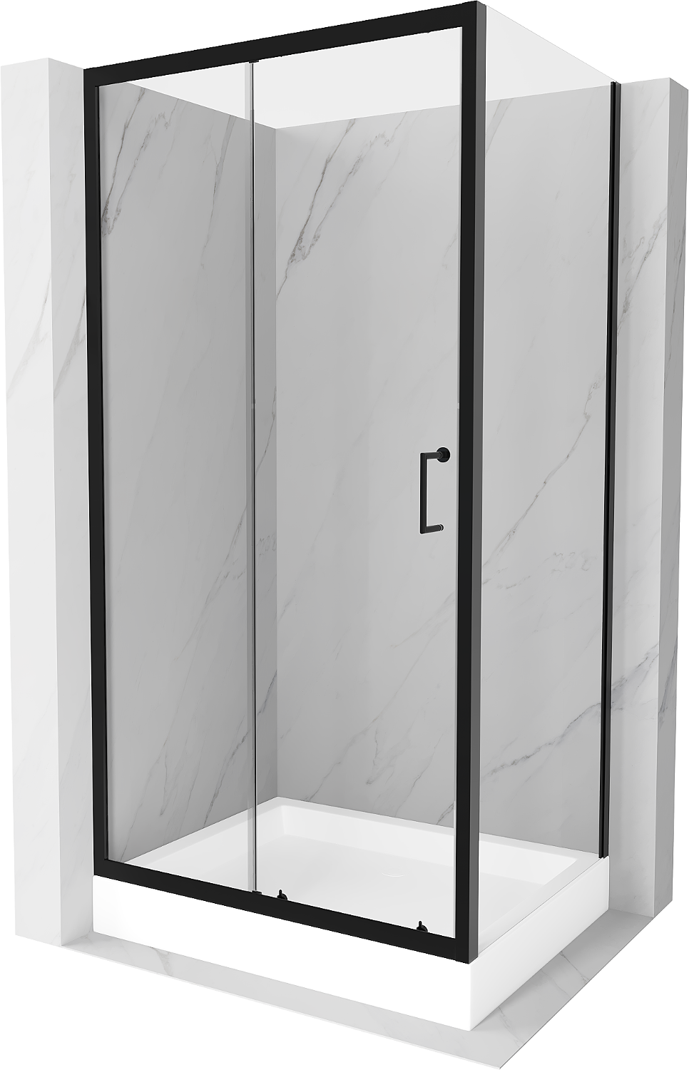 Mexen Apia bīdāma dušas kabīne 120 x 80 cm, caurspīdīga, melna + Rio dušas paliktnis - 840-120-080-70-00-4510