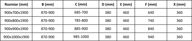 Izmērs: 90x80 cm (durvis 90 cm, siena 80 cm)