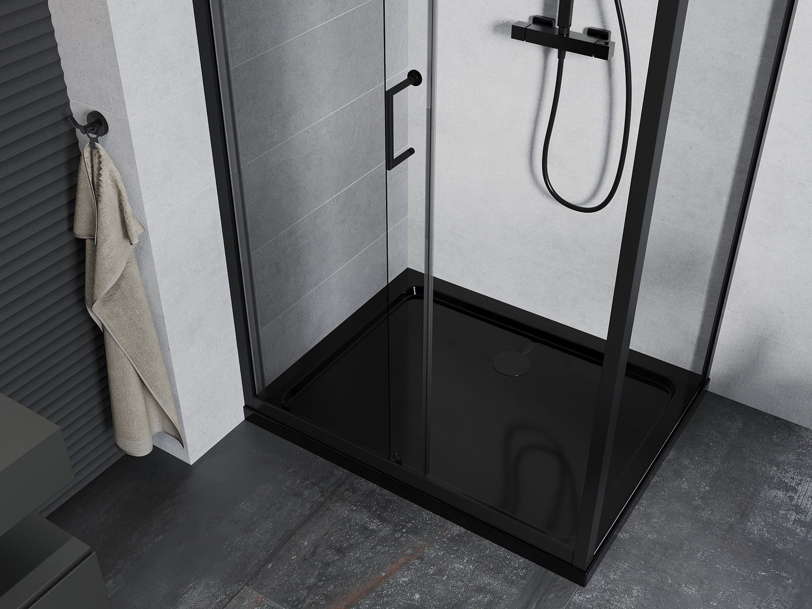 Mexen Apia bīdāmā dušas kabīne 90 x 80 cm, caurspīdīga, melna + plakans dušas paliktnis, melns - 840-090-080-70-00-4070B