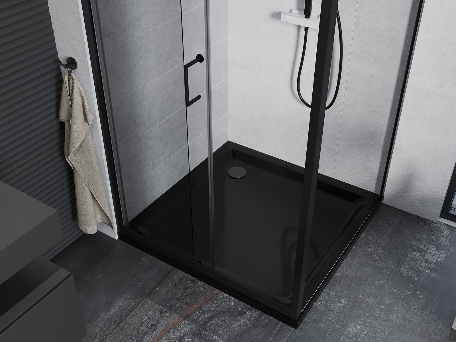 Mexen Rio dušas kabīne kvadrātveida 90 x 90 cm, caurspīdīga, melna - 860-090-090-70-00