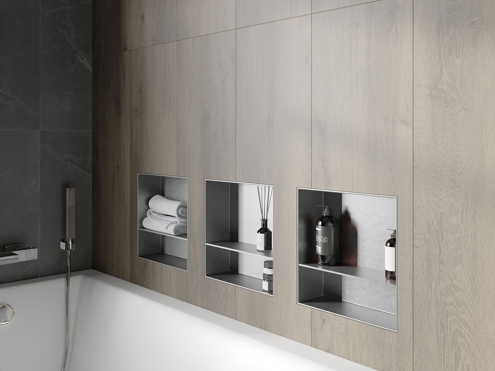 Mexen X-Wall-NR nišas plaukts bez malas ar plauktu 30 x 30 cm, inokss - 1911303010S