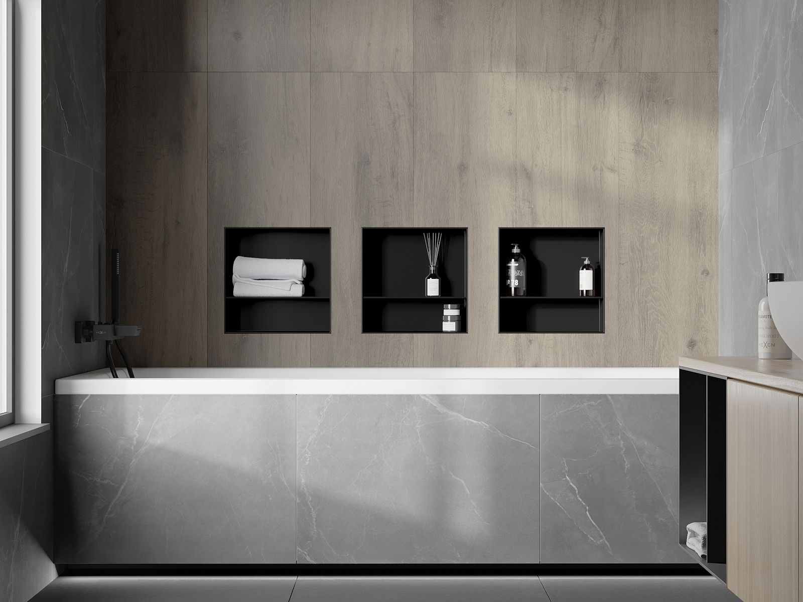 Iespēja uzstādīt sienā vai speciāli sagatavotā būvniecībā. Tā ir ārkārtīgi moderna un funkcionāla risinājums, kas ļauj ietaupīt telpu, kā arī pielāgot produktu interjera estētikai un radīt saskanīgu kompozīciju.