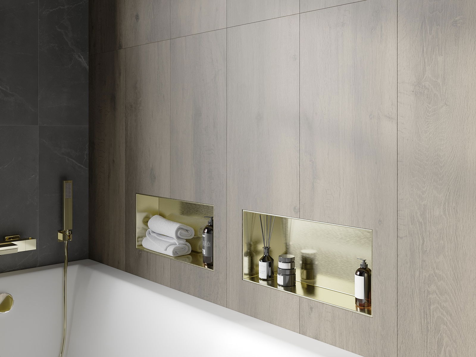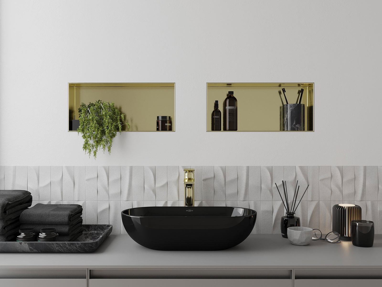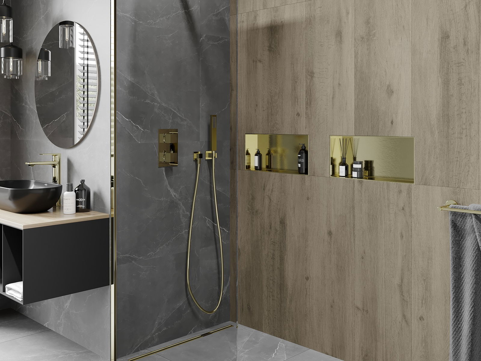 Mexen X-Wall-NR nišas plaukts bez flanša 45 x 20 cm, zelta sukāts - 1951452010