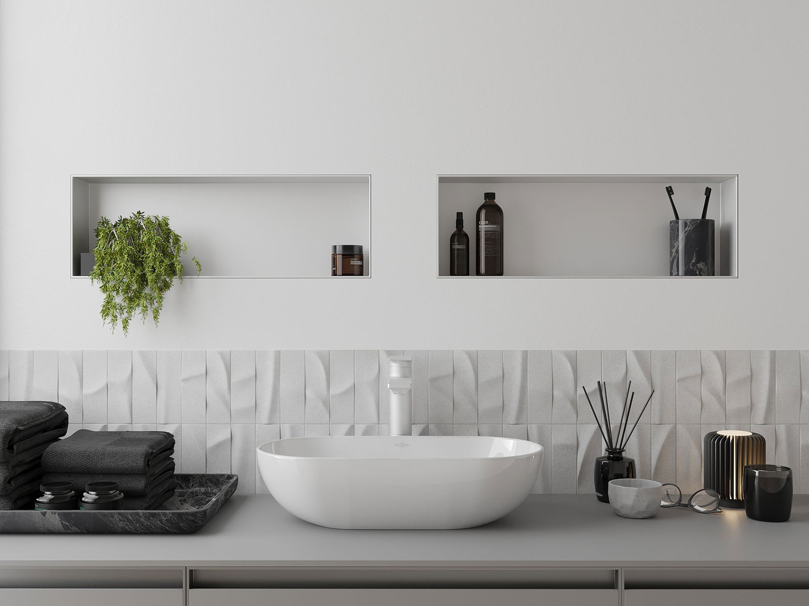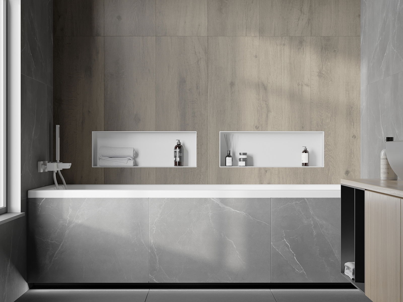 Iespēja uzstādīt sienā vai speciāli sagatavotā būvniecībā. Tā ir ārkārtīgi moderna un funkcionāla risinājums, kas ļauj ietaupīt telpu, kā arī pielāgot produktu interjera estētikai un radīt saskanīgu kompozīciju.