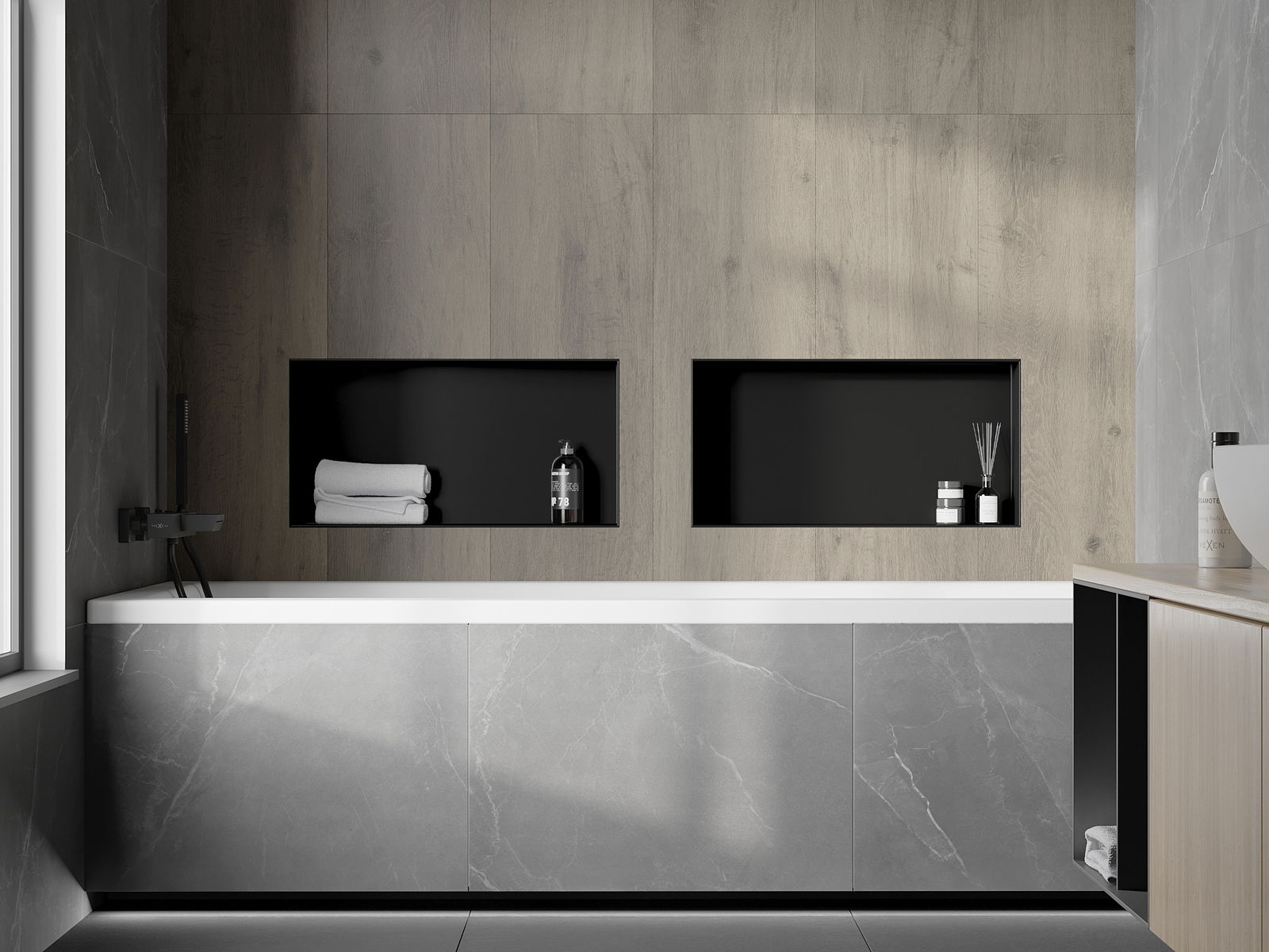 Iespēja uzstādīt sienā vai speciāli sagatavotā būvniecībā. Tā ir ārkārtīgi moderna un funkcionāla risinājums, kas ļauj ietaupīt telpu, kā arī pielāgot produktu interjera estētikai un radīt saskanīgu kompozīciju.
