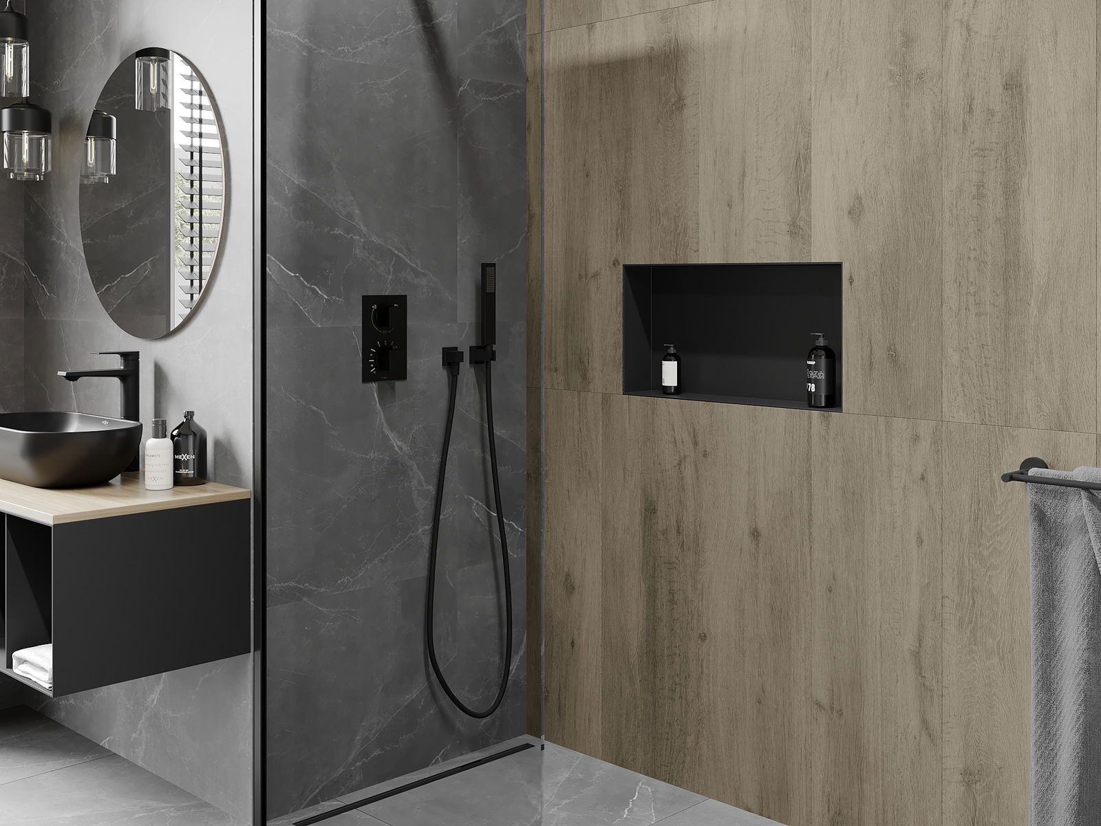 Mexen X-Wall-NR nišas plaukts bez apkakles, 60 x 30 cm, melns - 1971603010