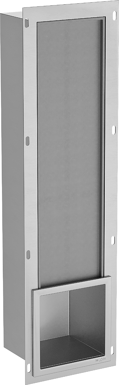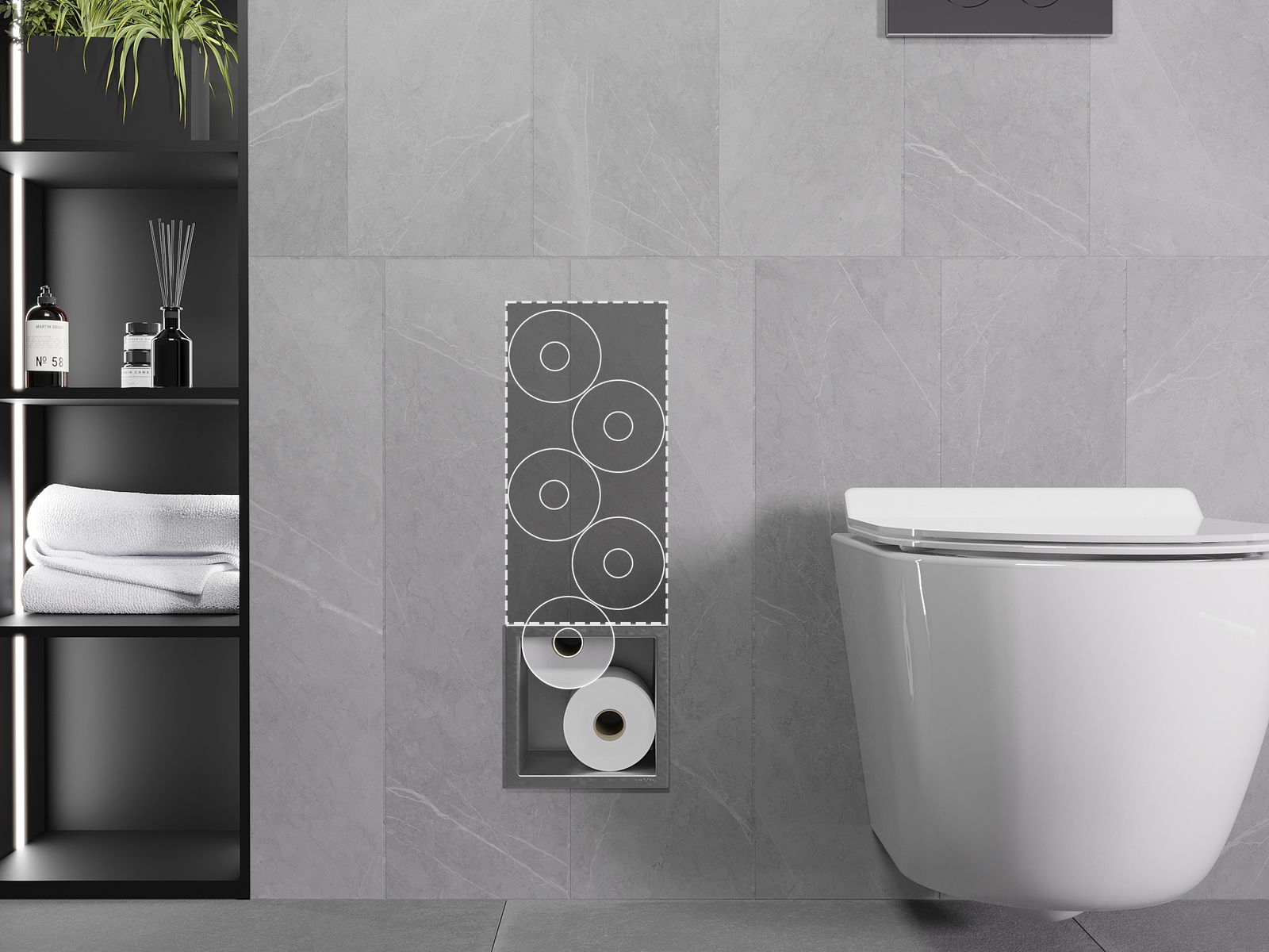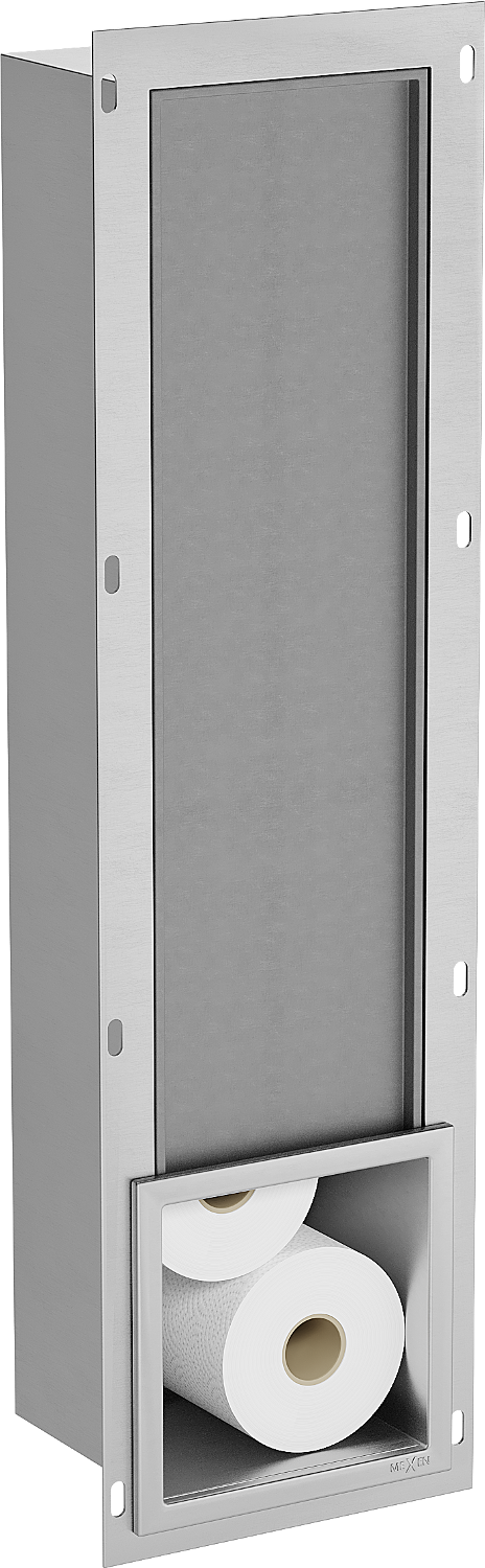 X-wall ir praktisks tualetes papīra turētājs ar sienā iebūvētu uzglabāšanas vietu. Jaunā rullīte vienmēr ir rokas stiepiena attālumā, un vietu, kas iepriekš tika izmantota tualetes papīra glabāšanai, var izmantot citādi.