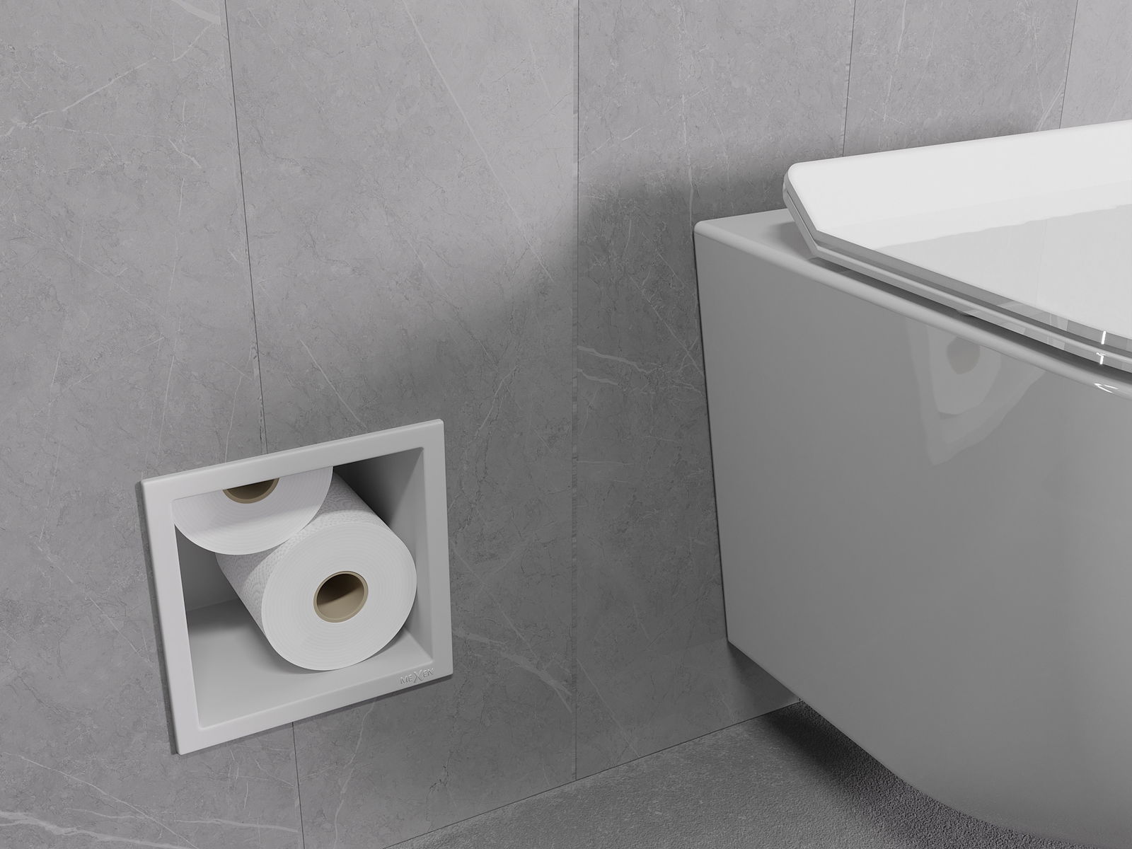X-wall ir praktisks tualetes papīra turētājs ar sienā iebūvētu uzglabāšanas vietu. Jaunā rullīte vienmēr ir rokas stiepiena attālumā, un vietu, kas iepriekš tika izmantota tualetes papīra glabāšanai, var izmantot citādi.
