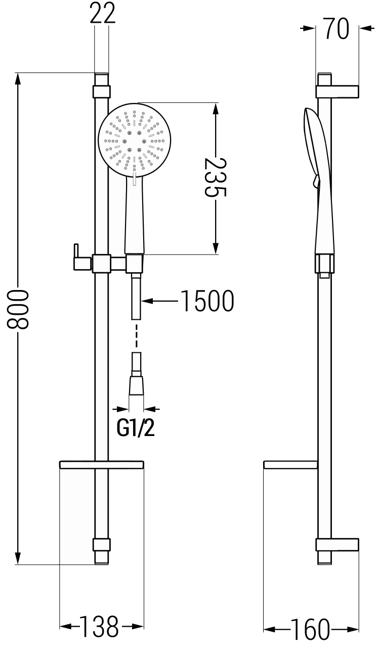 Šļūtenes garums: 150 cm