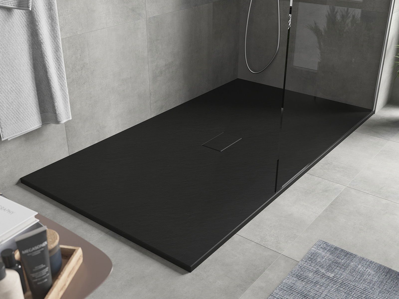 Mexen Hugo taisnstūra dušas paliktnis SMC 180 x 100 cm, melns - 42701018