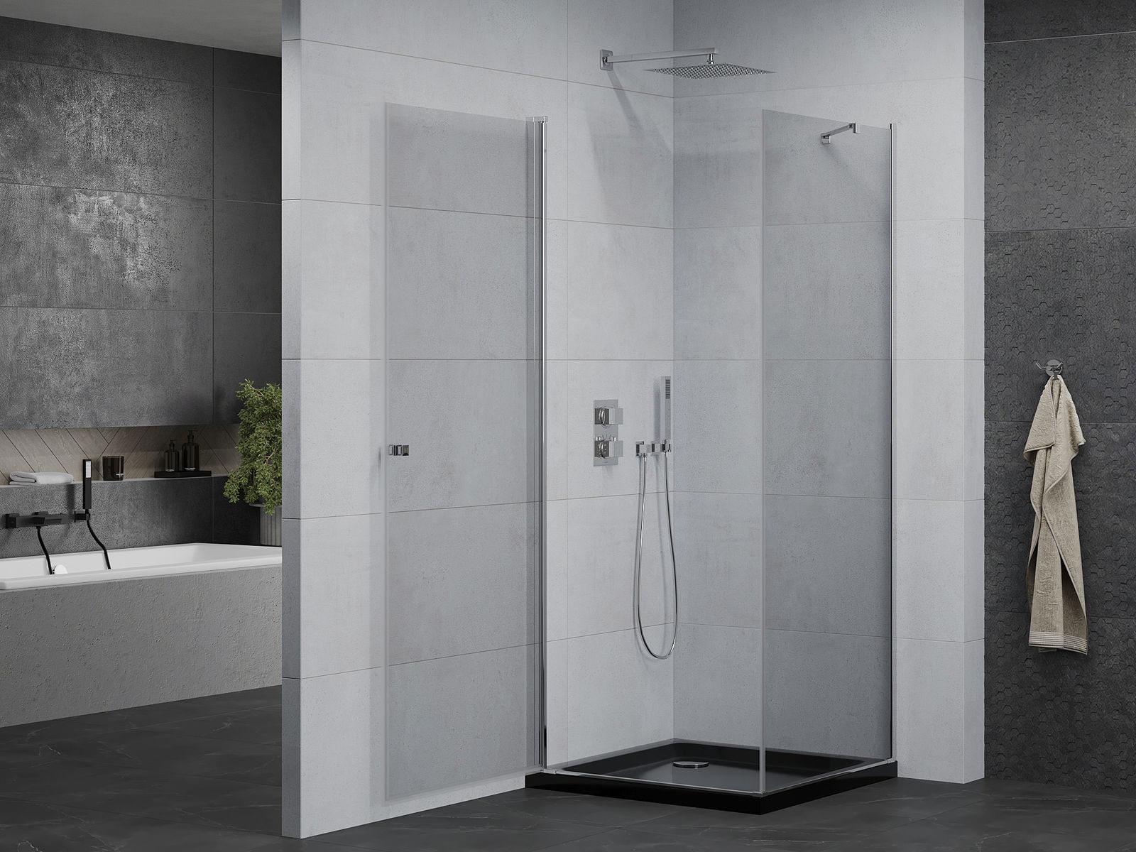 Mexen Pretoria atvāžama dušas kabīne 70 x 70 cm, caurspīdīga, hromēta + plakans melns dušas paliktnis - 852-070-070-01-00-4070