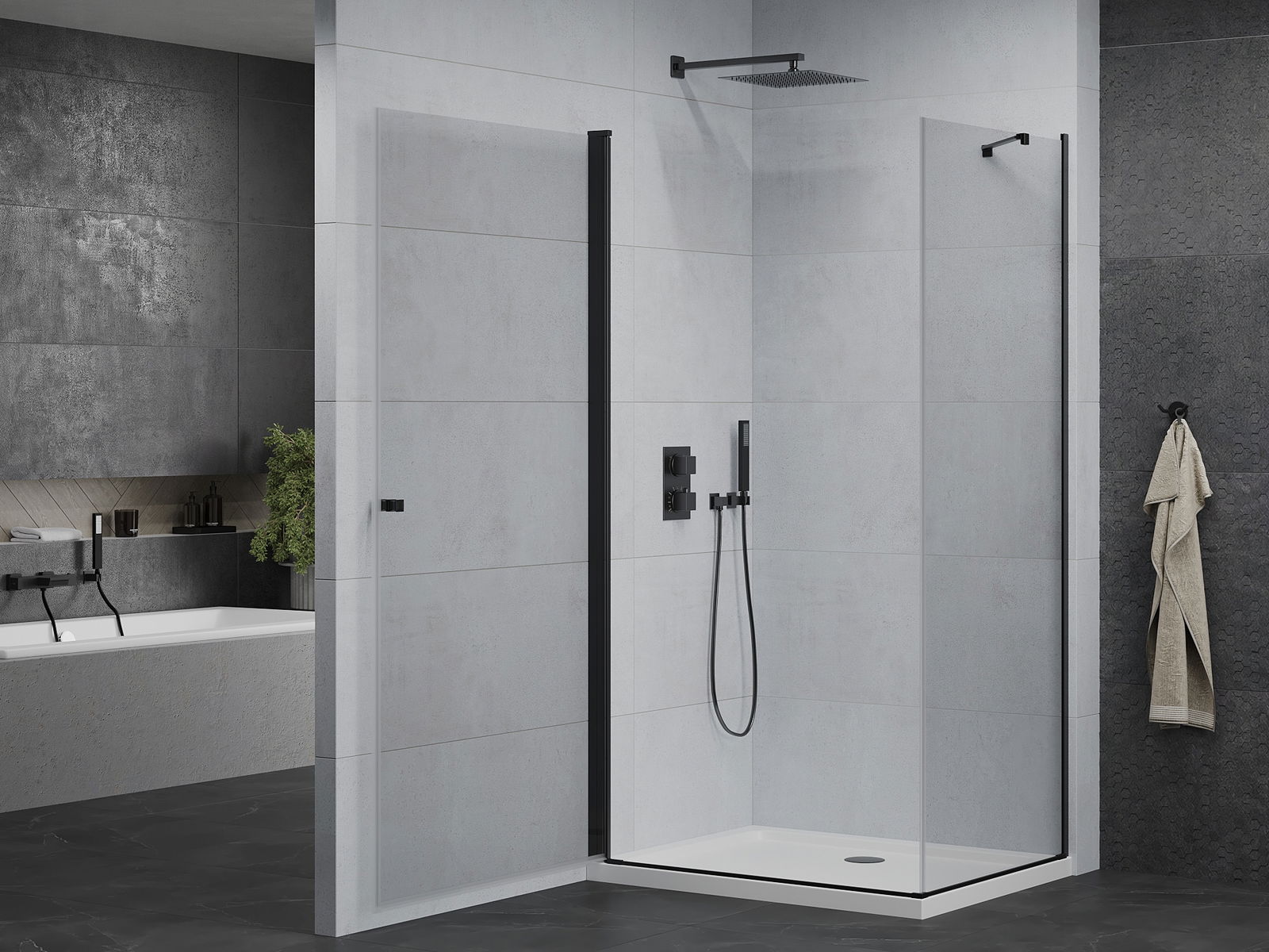 Mexen Pretoria izbīdāmā dušas kabīne 70 x 100 cm, caurspīdīga, melna + plakans dušas panelis - 852-070-100-70-00-4010B