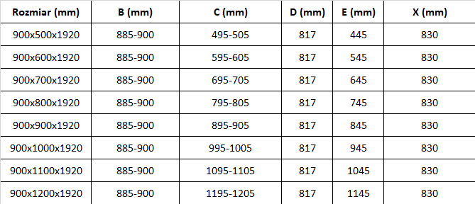 Izmērs: 90x100 cm (durvis 90 cm, siena 100 cm)