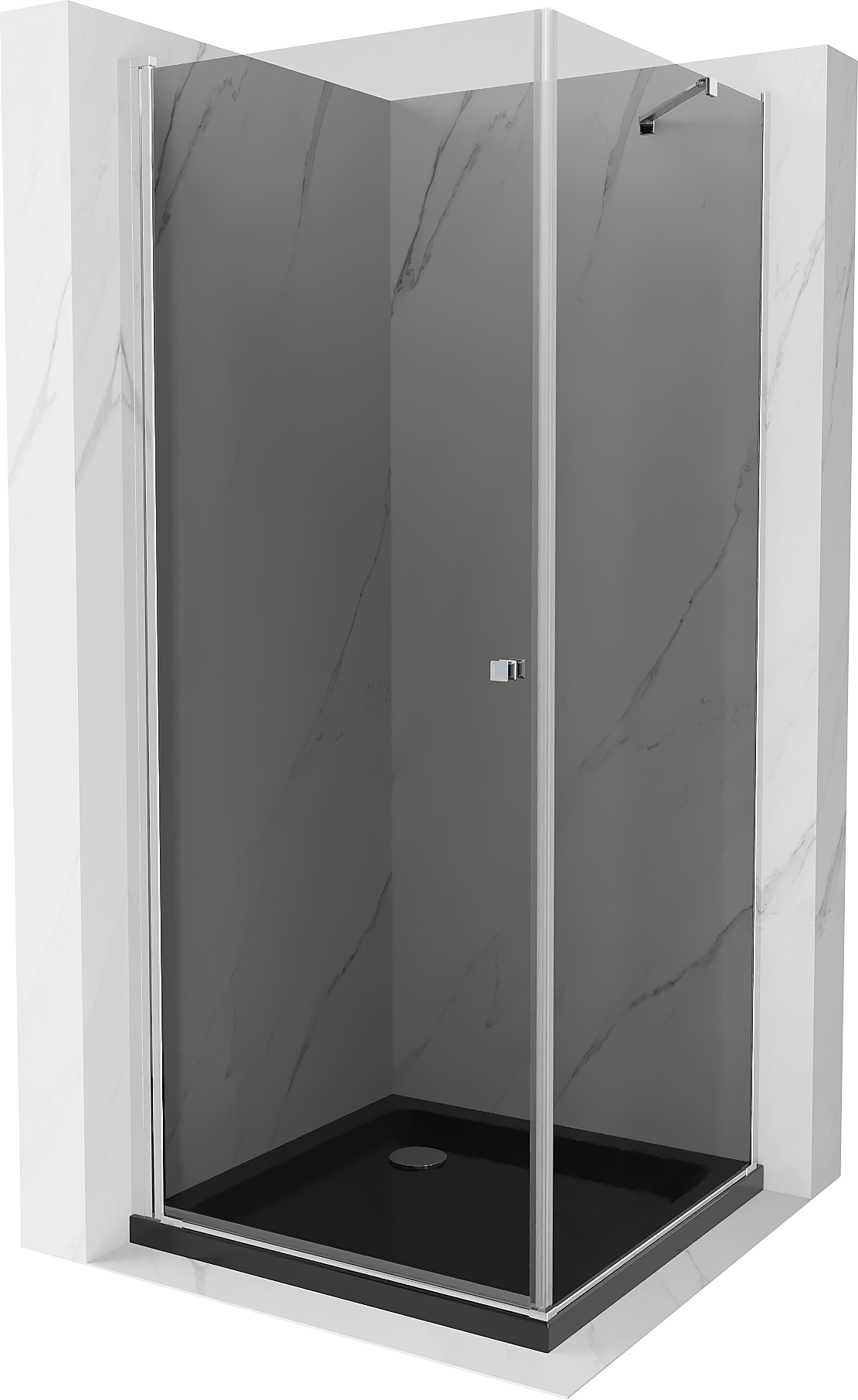 Mexen Pretoria duša kabīne atverama 80 x 80 cm, grafīts, hroms + Flat dušas baseins, melns - 852-080-080-01-40-4070