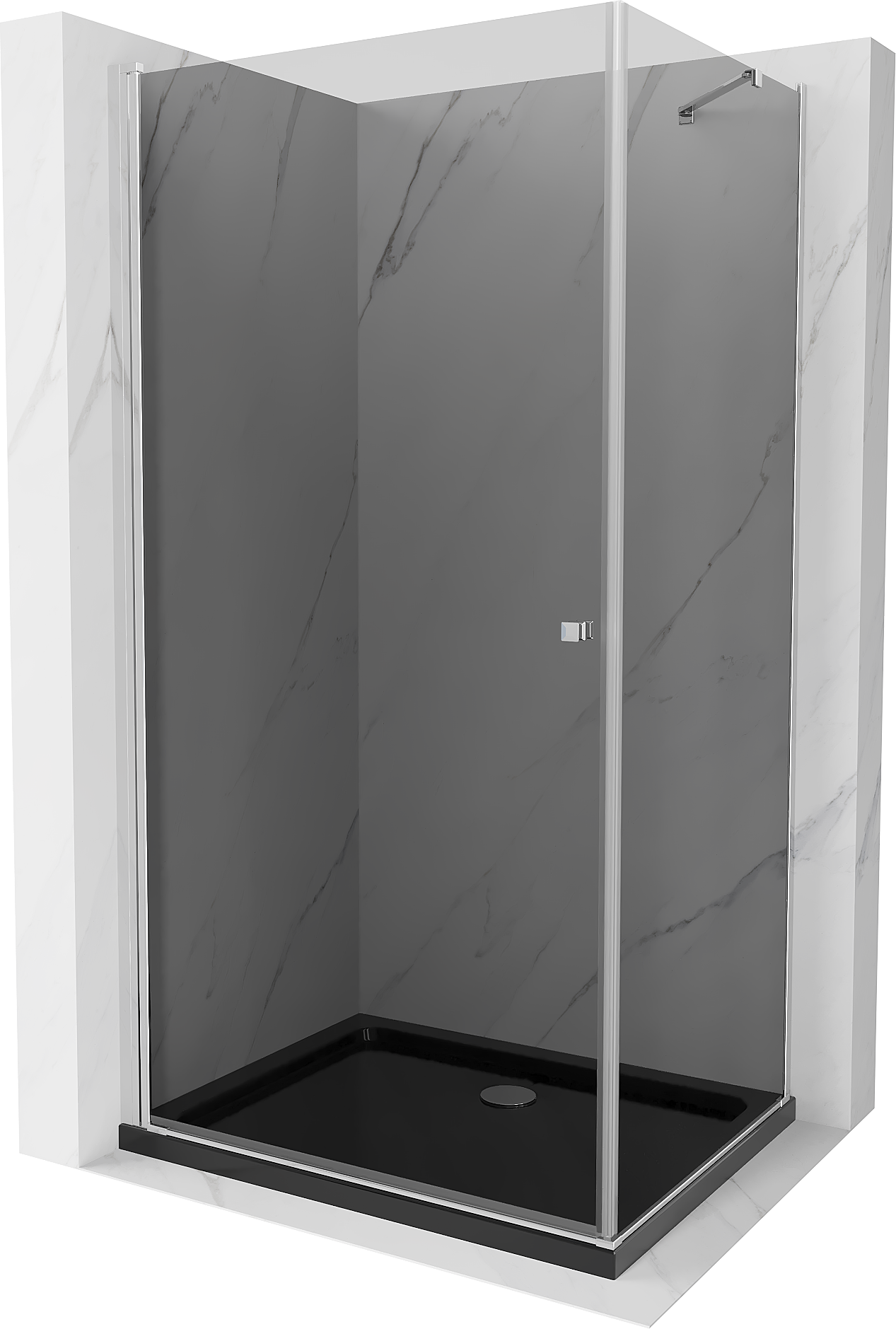 Mexen Pretoria šķērveida dušas kabīne 80 x 120 cm, grafīts, hroms + Flat dušas paliktnis, melns - 852-080-120-01-40-4070
