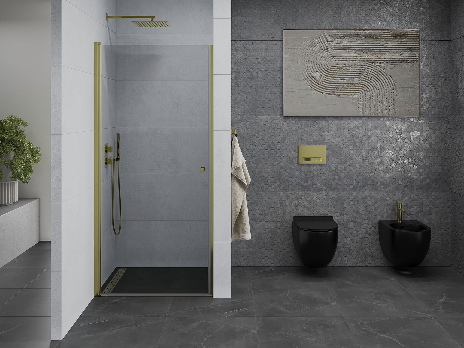 Mexen Pretoria 100 cm šarnīra dušas durvis, caurspīdīgas, zelta - 852-100-000-50-00