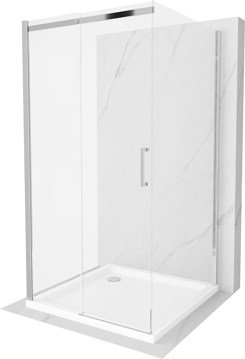 Mexen Omega-3S duša kabīne 3-sienas, bīdāmā 100x100 cm, caurspīdīga, hroma + Flat dušas paplāte - 825-100-100-01-00-3s-4010