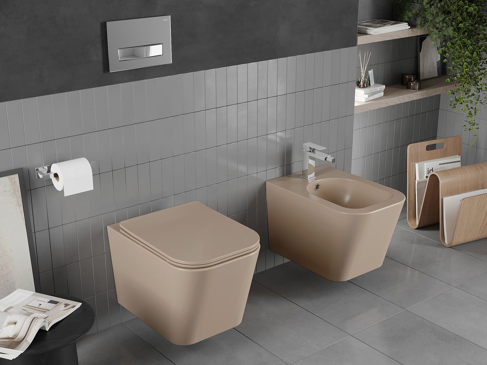 Matētā keramikas virsma lieliski uzsver izstrādājuma krāsas raksturu, piešķirot tam unikālu un izteiksmīgu apdari. Smalkā matētās keramikas struktūra vannas istabā ienes eleganci, radot estētisku telpu.
