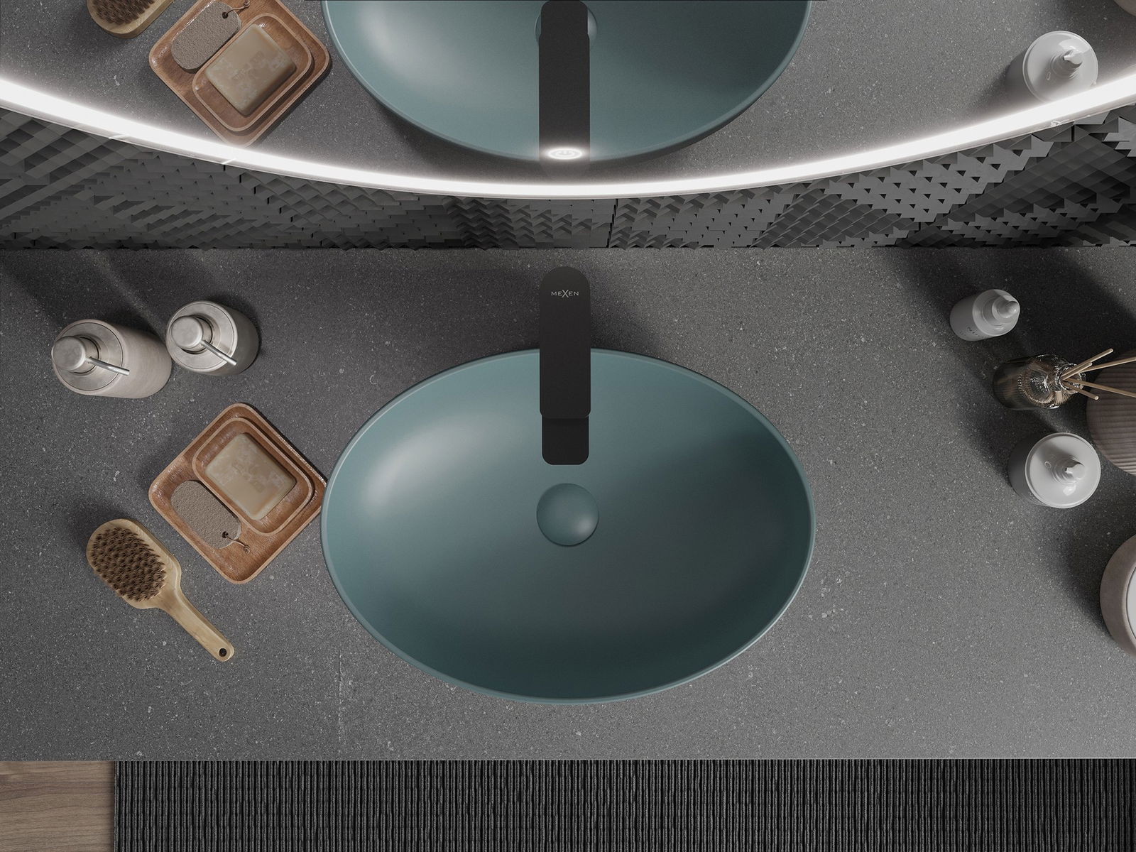 Matētā keramikas virsma lieliski uzsver izstrādājuma krāsas raksturu, piešķirot tam unikālu un izteiksmīgu apdari. Smalkā matētās keramikas struktūra vannas istabā ienes eleganci, radot estētisku telpu.