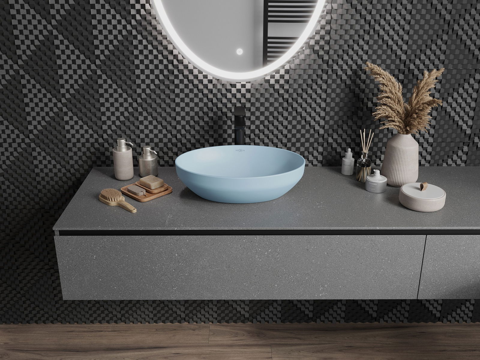 Matētā keramikas virsma lieliski uzsver izstrādājuma krāsas raksturu, piešķirot tam unikālu un izteiksmīgu apdari. Smalkā matētās keramikas struktūra vannas istabā ienes eleganci, radot estētisku telpu.