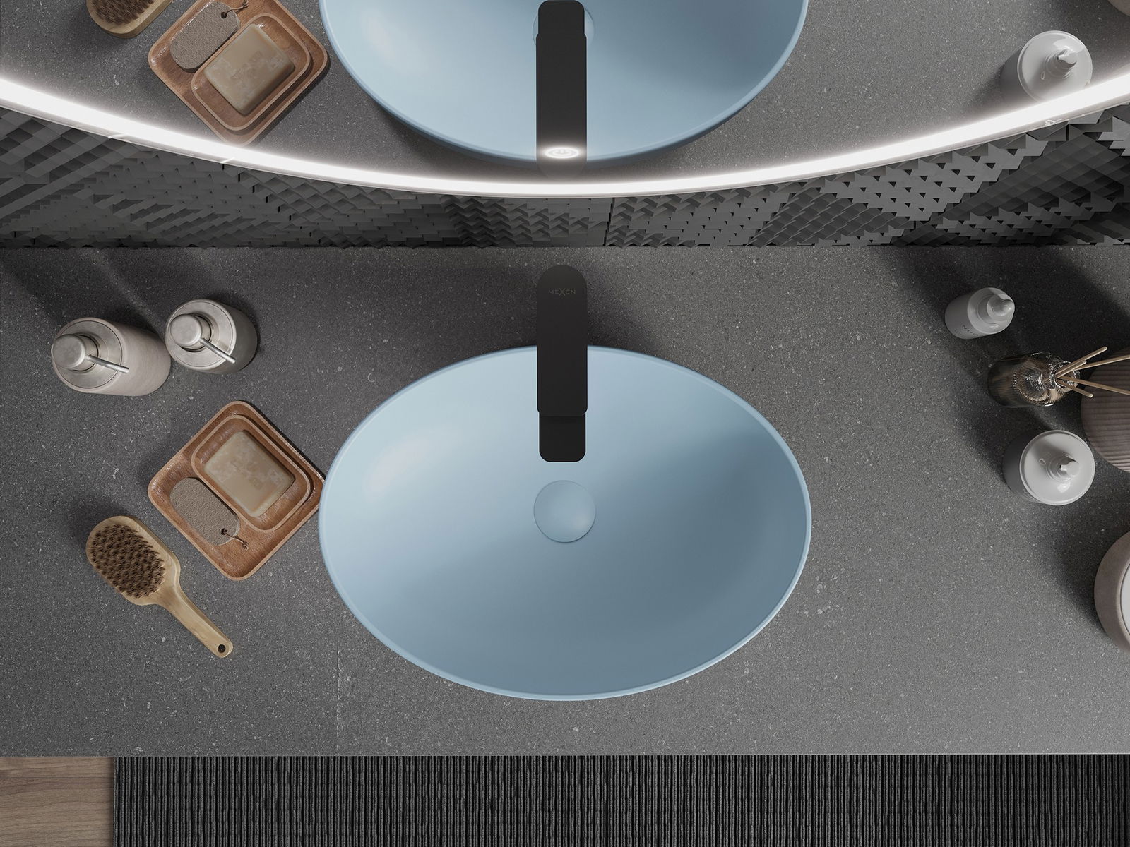 Mexen Cornelia ir eleganta virsmas izlietne ar izmēriem 50 x 37 cm, kas izceļas ar unikālu zilu, matētu apdari. Izgatavota no augstas kvalitātes sanitārās keramikas, tā ne tikai nodrošina stilīgu izskatu, bet arī izturību un vieglu kopšanu. Ovāla forma un bez atverēm baterijām un pārplūdei akcentē mūsdienīgu dizainu. Ideāli piemērota vannas istabām, tā apvieno funkcionalitāti ar estētiku, radot neaizmirstamu telpu lietotājiem.