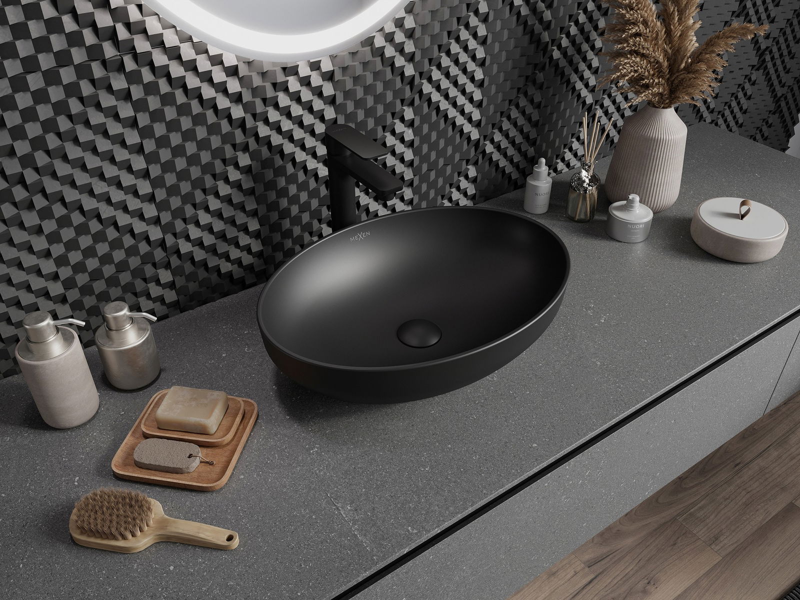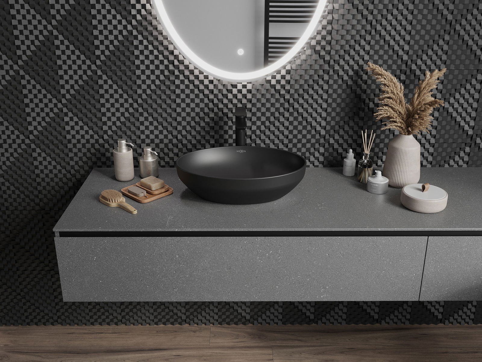Matētā keramikas virsma lieliski uzsver izstrādājuma krāsas raksturu, piešķirot tam unikālu un izteiksmīgu apdari. Smalkā matētās keramikas struktūra vannas istabā ienes eleganci, radot estētisku telpu.
