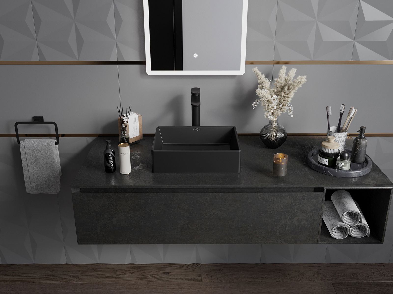 Matētā keramikas virsma lieliski izceļ produkta krāsu raksturu, piešķirot tam unikālu un izteiksmīgu apdari. Smalka matētās keramikas struktūra vannas istabā ienes eleganci, radot estētisku telpu.