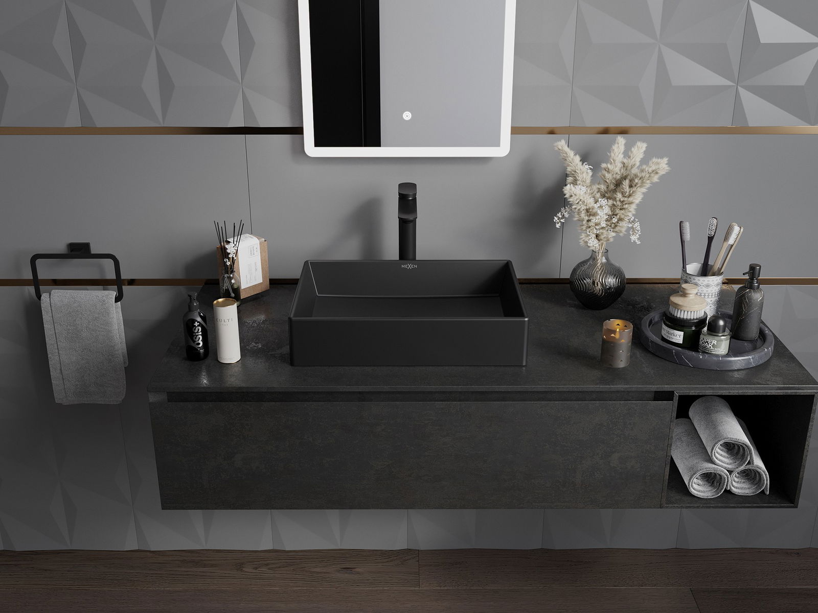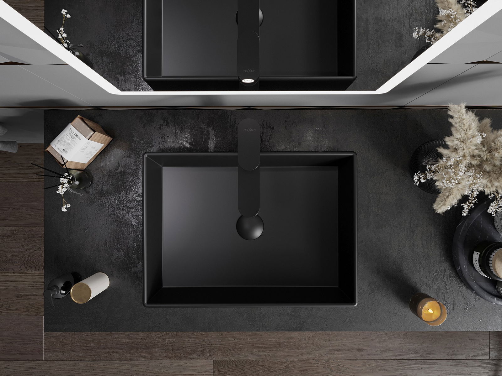 Matētā keramikas virsma lieliski uzsver izstrādājuma krāsas raksturu, piešķirot tam unikālu un izteiksmīgu apdari. Smalkā matētās keramikas struktūra vannas istabā ienes eleganci, radot estētisku telpu.