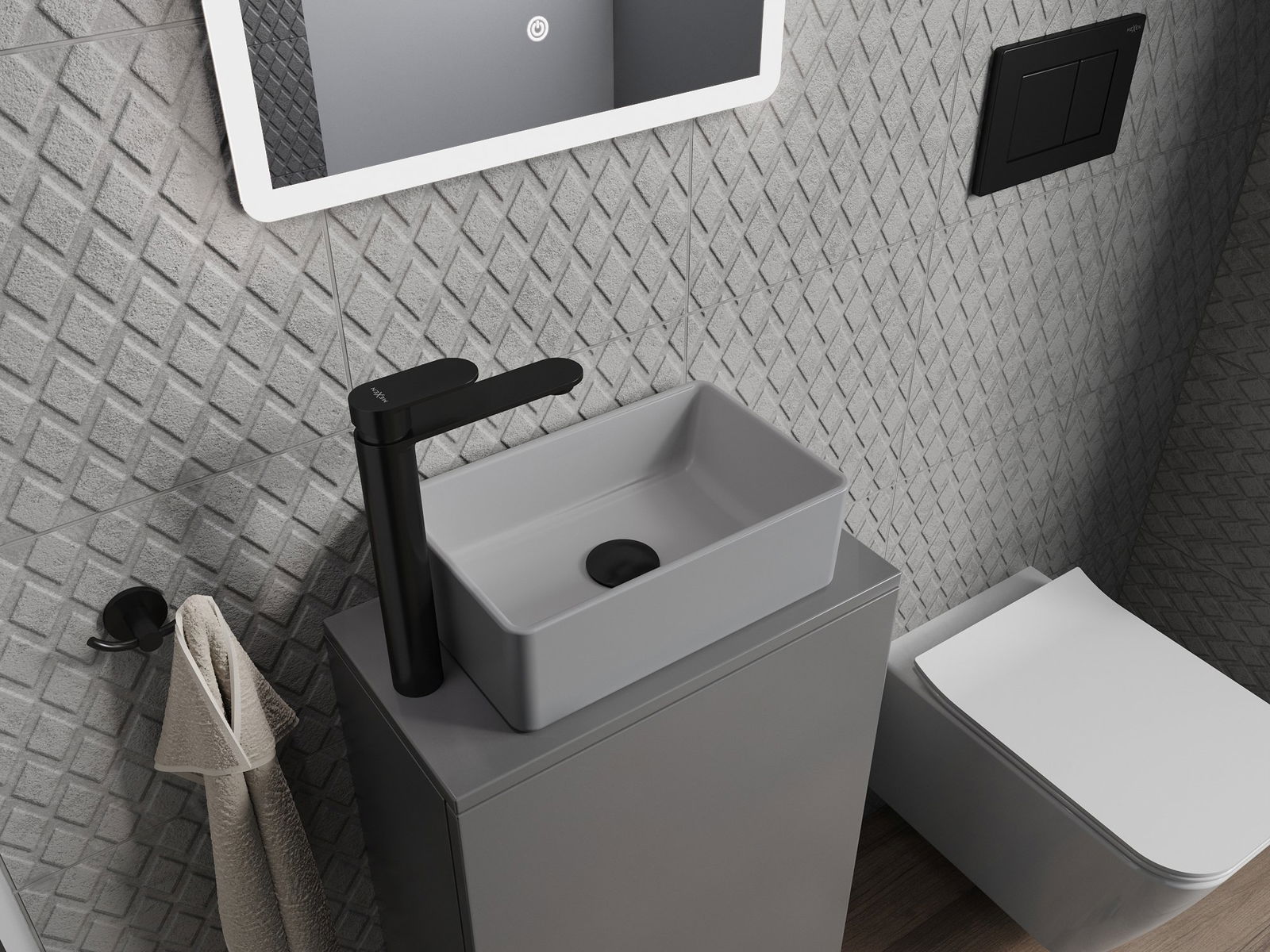 Matētā keramikas virsma lieliski uzsver izstrādājuma krāsas raksturu, piešķirot tam unikālu un izteiksmīgu apdari. Smalkā matētās keramikas struktūra vannas istabā ienes eleganci, radot estētisku telpu.