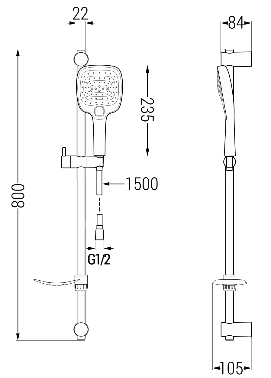 Savienojums ar 1/2" vītni ir vispārēji izmantots standarta elements iekšējās ūdens instalācijās. Pateicoties tam, dušas papildu elementu pievienošana un montāža ir daudz vieglāka un intuitīvāka.