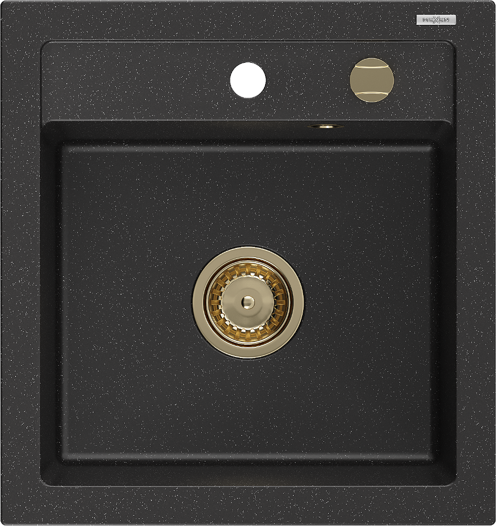 Mexen Vito granitā izlietne ar 1 nodalījumu 520 x 490 mm, melna/sudraba metālika, sifons zelta - 6503521000-73-G