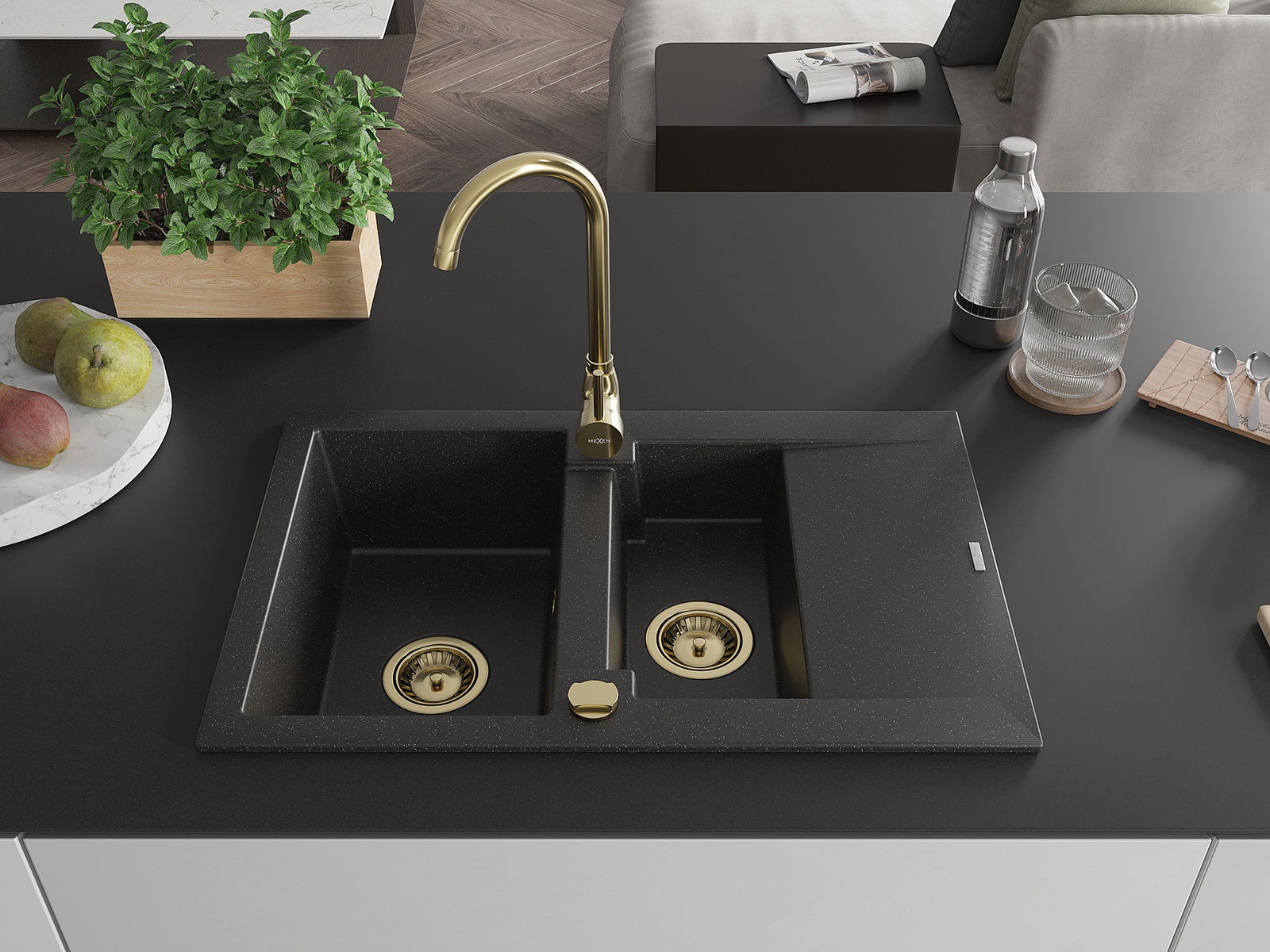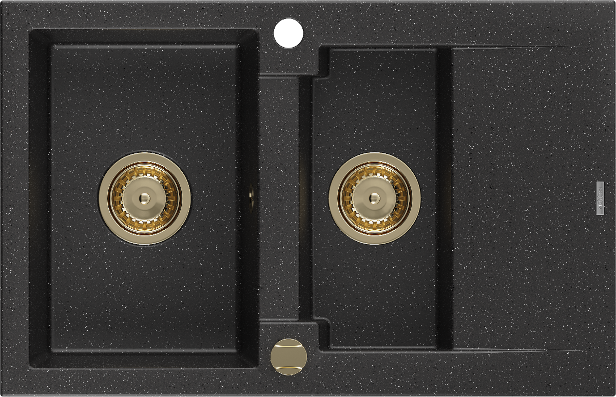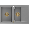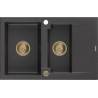 Mexen Gaspar granitā izlietne ar 1,5 kamerām un notecinātāju 737 x 475 mm, melns/sudraba metāliks, zelta sifons