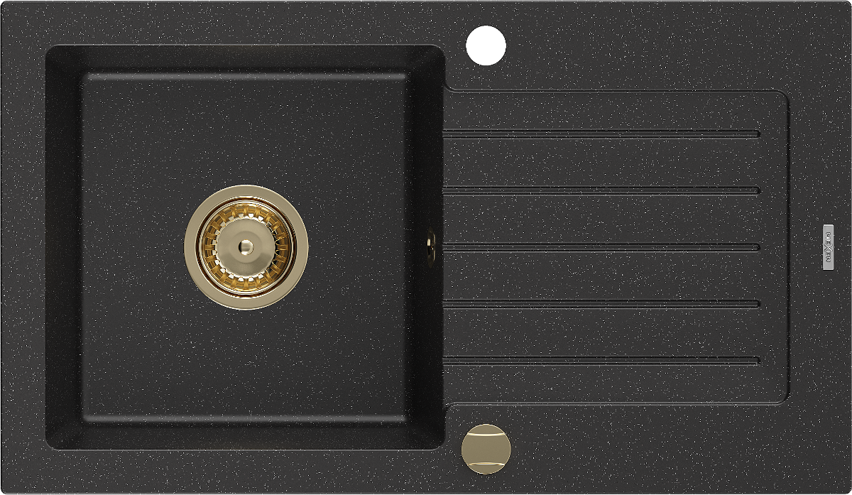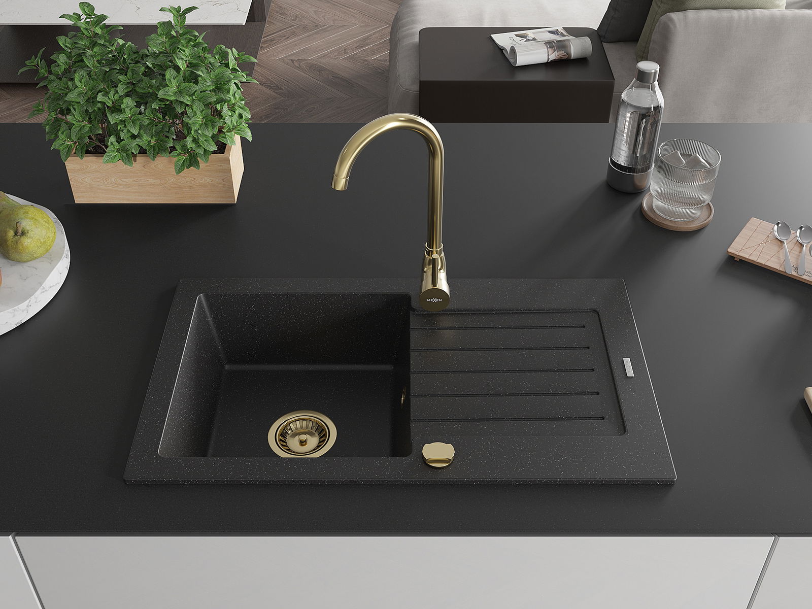 Mexen Pablo granitizlietne ar vienu nodalījumu ar noteka zonu 752 x 436 mm, melna/sudraba metālika, zelta sifons
