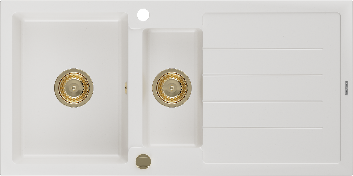 Izlietnei ir 2 daļēji izurbtas atveres ar diametru 35 mm, kuras var pašrocīgi izsist. Tās var izmantot, piemēram, šķidruma dozatora uzstādīšanai, kas novērsīs plastmasas pudeļu klātbūtni virtuvē un piešķirs tai elegantu apdari.