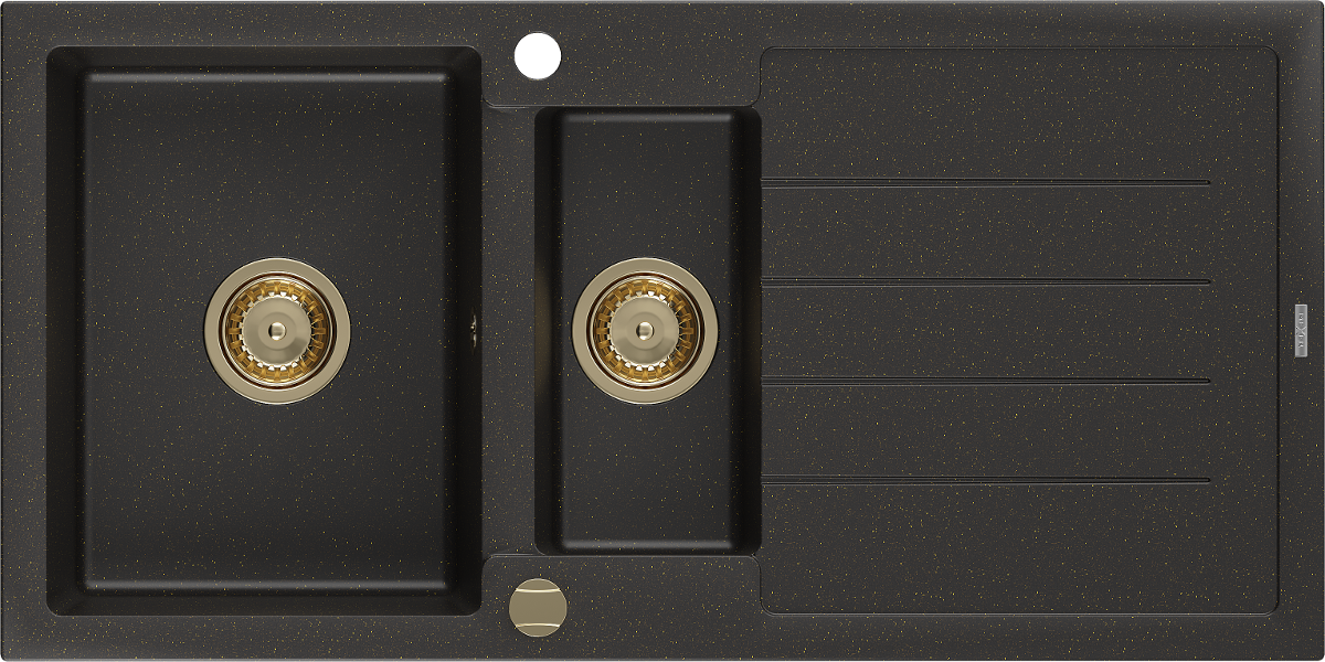 Mexen Andres grants izlietne 1,5 nodalījumu ar noteci 1000 x 500 mm melns/zeltains metāliks, zelta sifons - 6515101510-75-G