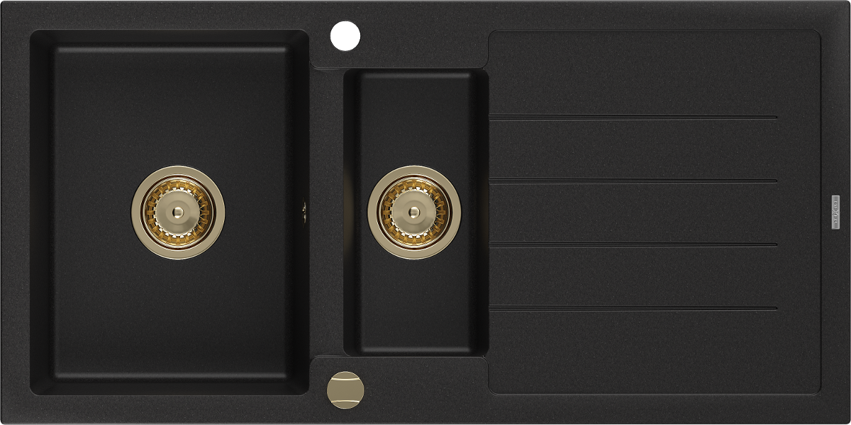 Izlietnei ir 2 daļēji izurbtas atveres ar diametru 35 mm, kuras var pašrocīgi izsist. Tās var izmantot, piemēram, šķidruma dozatora uzstādīšanai, kas novērsīs plastmasas pudeļu klātbūtni virtuvē un piešķirs tai elegantu apdari.
