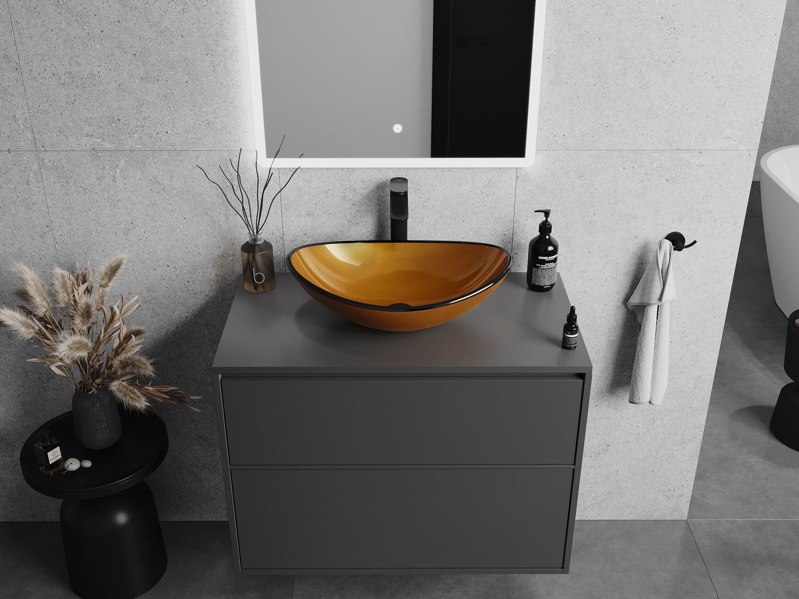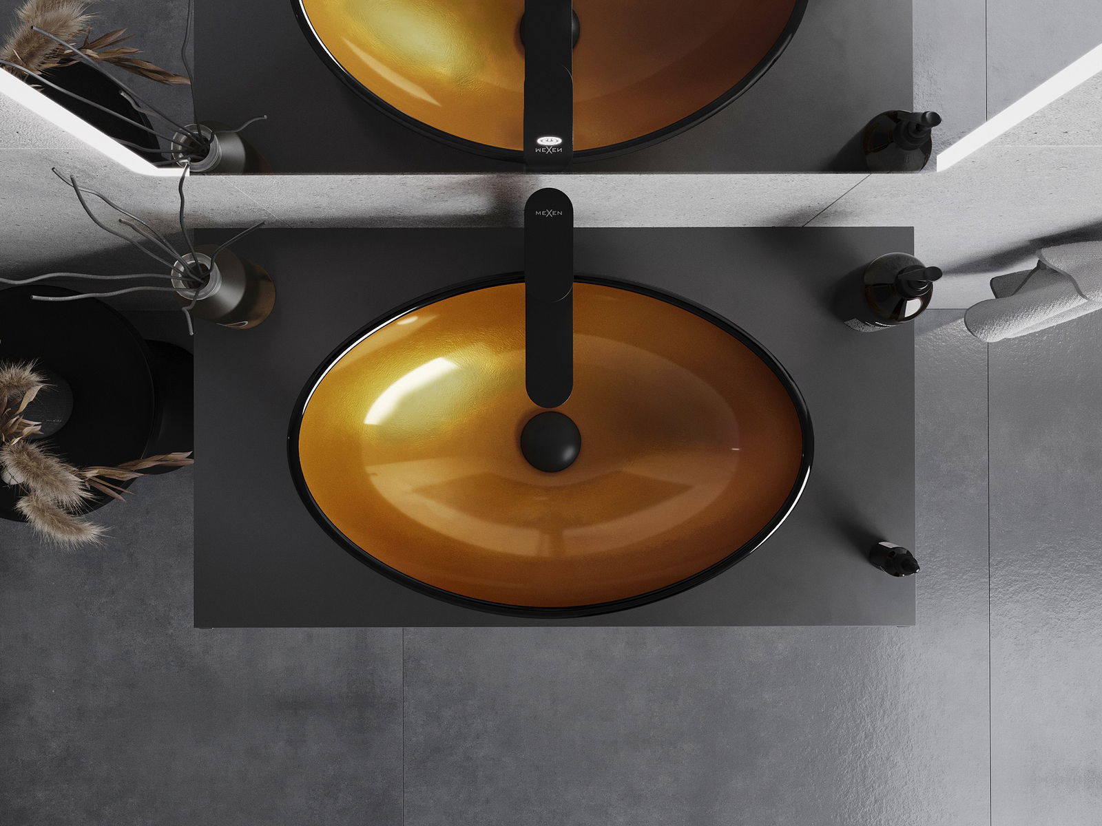 Mexen Sonia stikla virsmas izlietne 54 x 37 cm, zelta - 24145450