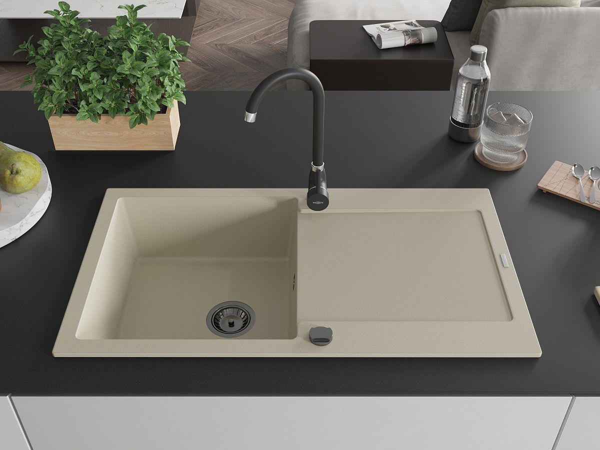 Izlietnes virsma ir izturīga pret traipiem un krāsas izmaiņām, tāpēc to ir viegli uzturēt tīru un tā saglabā savu krāsu ilgu lietošanas laiku. Estētiski un praktiski papildina jebkuru virtuvi.