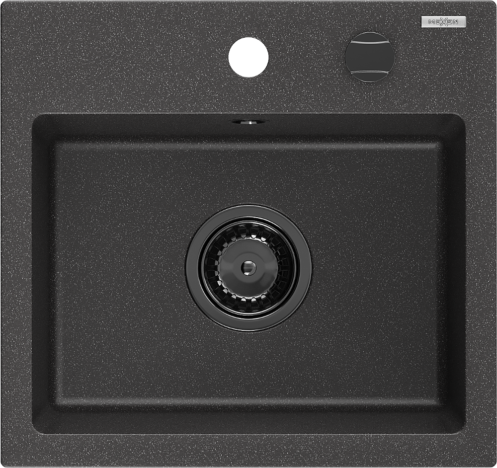 Mexen Milo granīta izlietne ar vienu nodalījumu 435 x 410 mm, melna ar plankumiem, melns sifons - 6505441000-76-B