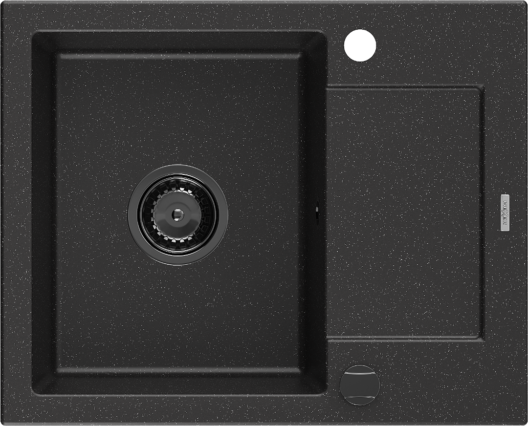 Mexen Enzo granitā izlietne ar vienu nodalījumu un noteci 576 x 465 mm, melna/sudraba metāliks, melns sifons - 6506571005-73-B