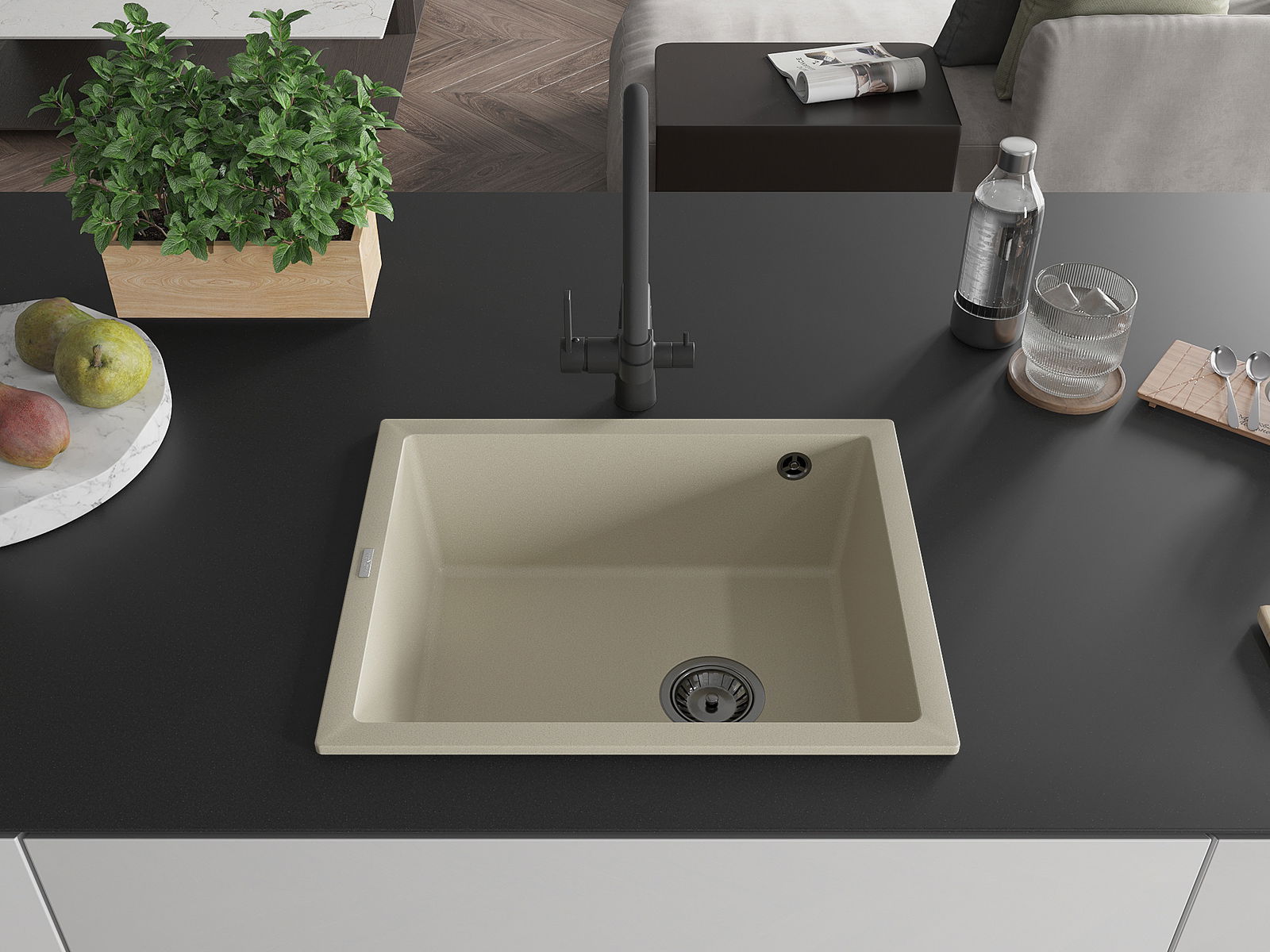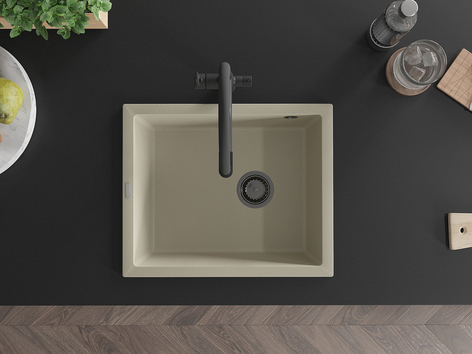 Mexen Pedro granitizlietne izlietne ar vienu nodalījumu 560 x 460 mm, bēša, sifons melns - 6508561000-69-B