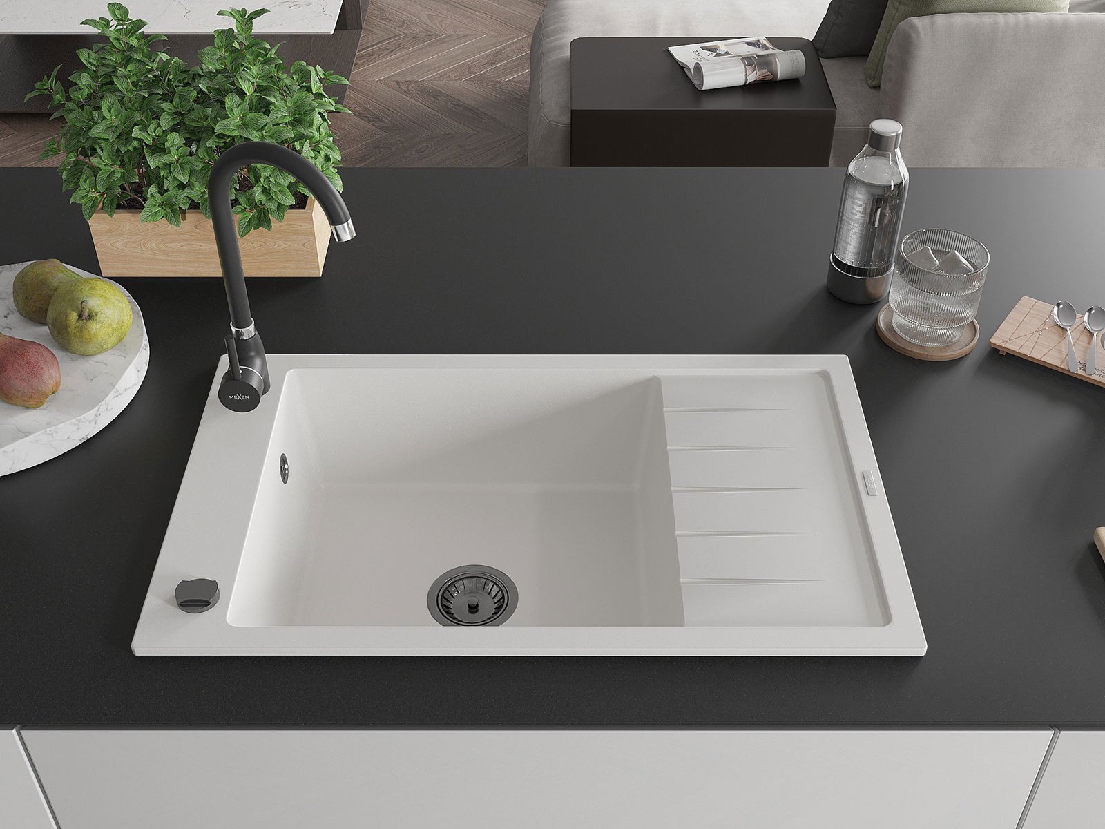 Izlietnes virsma ir izturīga pret traipiem un krāsas izmaiņām, tāpēc to ir viegli uzturēt tīru un tā saglabā savu krāsu ilgu lietošanas laiku. Estētiski un praktiski papildina jebkuru virtuvi.