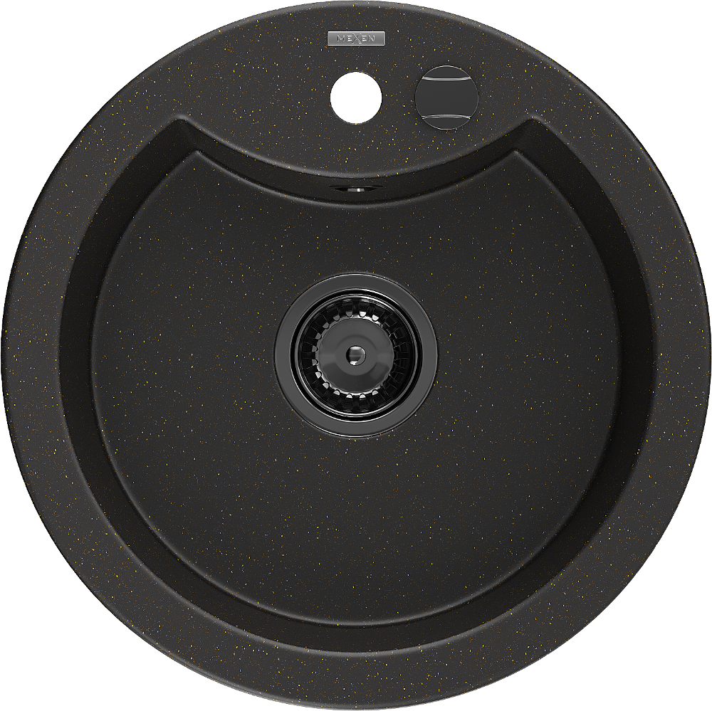 Mexen Diego granit izlietne ar 1 nodalījumu 488 x 480 mm, melna/zeltaina metālika, melns sifons - 6512481000-75-B