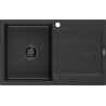 Mexen Bruno granitais izlietne ar vienu nodalījumu un noteku 795 x 495 mm, melna ar šļakatām, melns sifons - 6513791010-76-B
