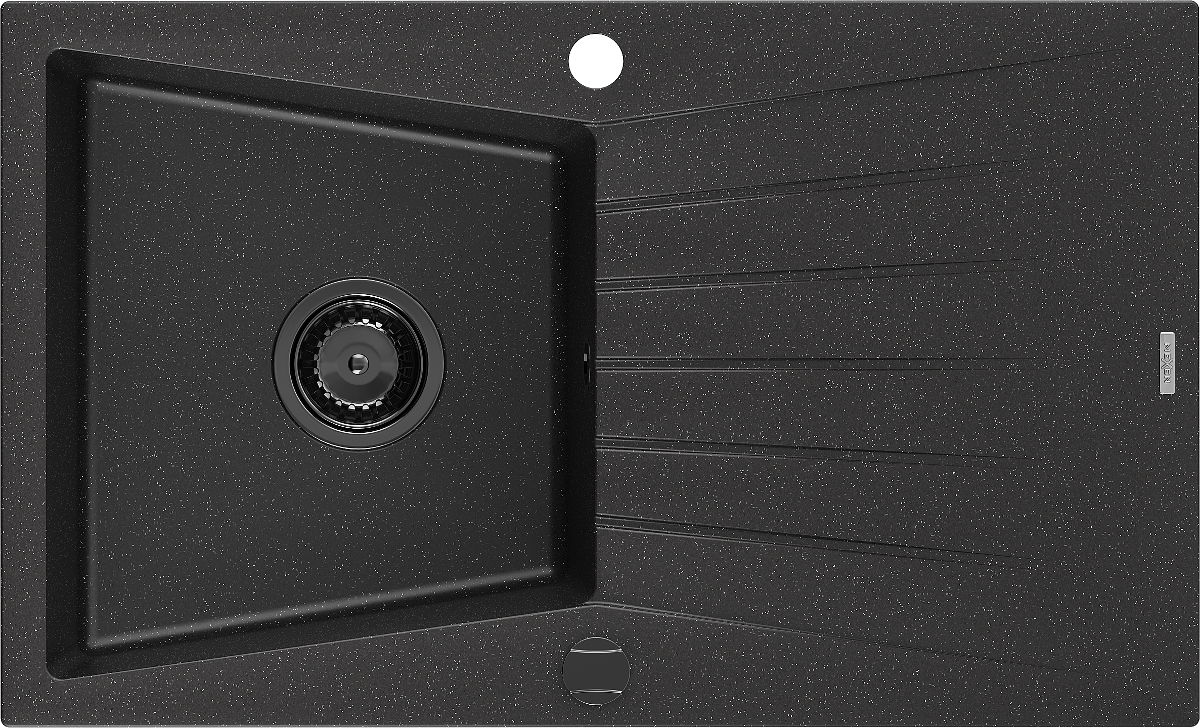 Mexen Cesar granitizlietne izlietne ar vienu nodalījumu un notecējumu 775 x 470 mm, melna/sudraba metāliska, melnais sifons