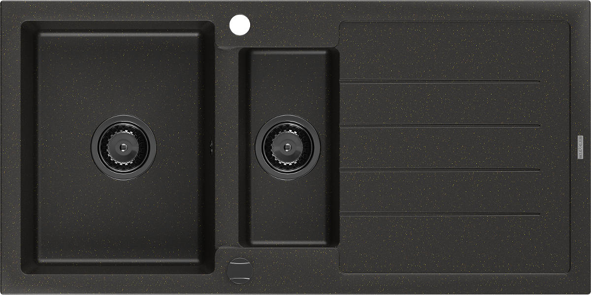 Mexen Andres 1,5 nodal klints izlietne ar noteces zonu 1000 x 500 mm melna/zeltaina metaliska, melna sifona - 6515101510-75-B